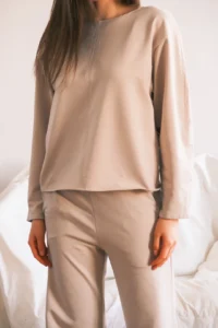 Donji deo trenerke Hera spaja maksimalnu udobnost I prefinjeni izgled u jednom savrseno oblikovanom kroju. Izradjena od 100% pamucnog futera, ova trenerka pruza mekocu, toplinu u kojoj vasa koza moze da dise. Uzi Gornji deo lepo prati liniju tela, dok se nogavica od boka suptilno siri u elegantan “fake wide” efekat koji izduzuje figure I donosi poseban, sofisticiran pad.